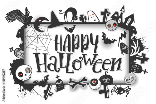 Happy Halloween Horizontal Banner With Hand Lettering Greetings