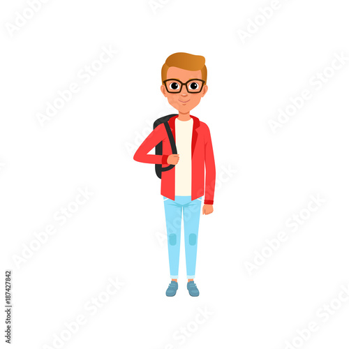 Cartoon Child Character In Red Jacket White T Shirt And Jeans