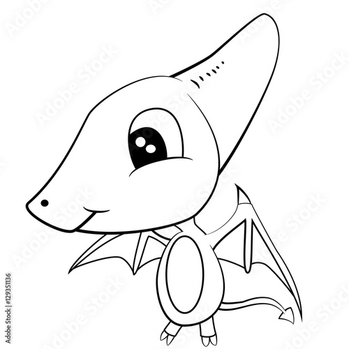 Cute Black And White Cartoon Of Baby Pterodactyl Dinosaur Drawing