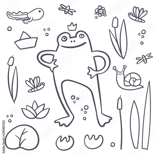 Frog Coloring Book Set With Flies Dragonfly Snail Summer Swamp